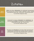 1x Rote-Beete Zutaten: Rote Beete* 35%, Erdnusskerne* 29%, Wasser, Äpfel*, Branntweinessig*, Reishefeflocken*, Sonnenblumenöl*, Steinsalz, Kümmel*, Koriander*, Verdickungsmittel (Agar-Agar*, Johannisbrotkernmehl*, Guarkernmehl*)