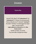 Zutaten: Paprika* 26%, Oliven* 13%, Erdnusskerne* 11%, Cashewkerne* 7%, Wasser, Branntweinessig*, Natives Olivenöl extra*, Steinsalz*, Senfsaat*, Koriander*, Pfeffer*, Verdickungsmittel (Agar-Agar*, Guarkernmehl*)